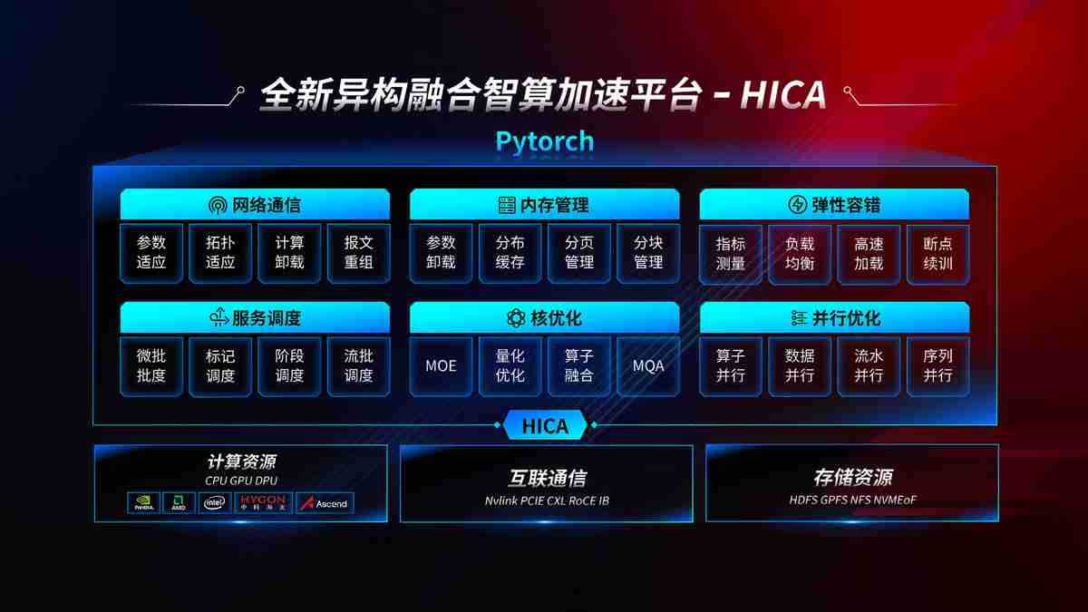 通过自研的服务层、、、、中间适配层、、、、以及调度编排算法,,采用数据并行、、模型并行等多种并行方式,,,,把并行计算任务进行有效的分解,,,,使其分别由相应的软件栈和算力资源来承接。。。当GPU资源变化,,,HICA可以实时动态调度计算子任务并调整模型拓扑和架构,,以充分聚合各种算力资源。。。。